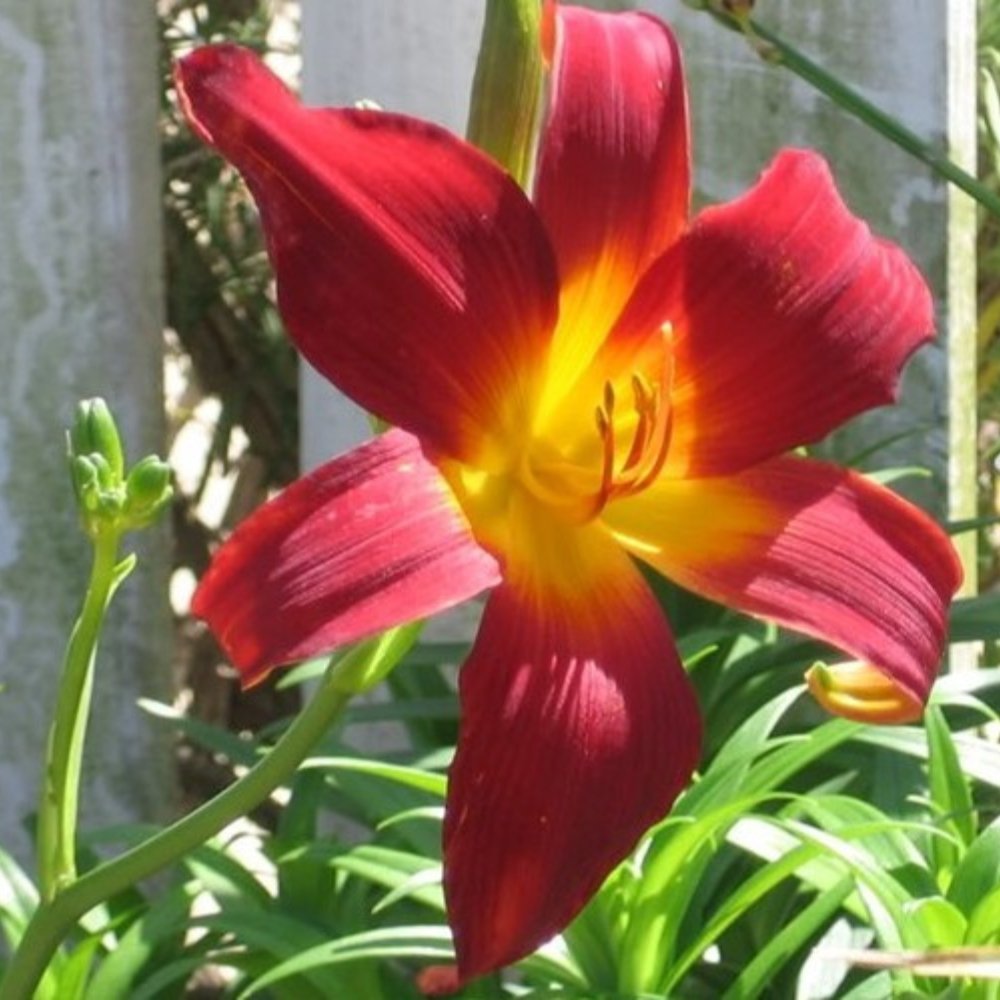 This perennial has deep velvet red pedals with a lemon-yellow throat in early to mid-season. The showy flowering stalks rise above the green grassy foliage reaching 22 inches(18’’ wide).  This excellent re-bloomer and low maintenance perennial aesthetically enhances landscapes by planting in masses or borders.